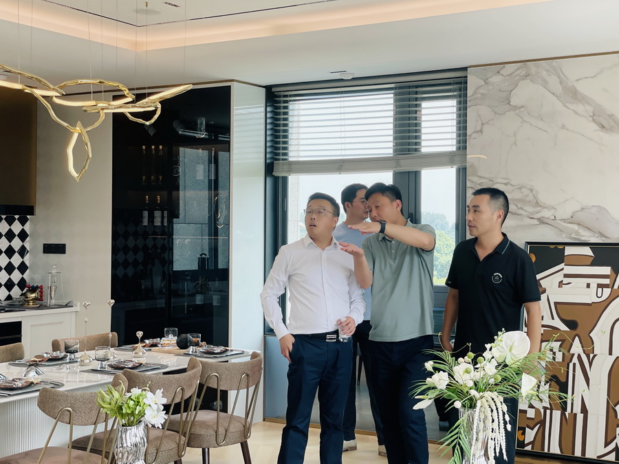 李有贵一行首先参观了新能源·江山映项目营销中心,通过介绍深入了解项目极致产品力打造、高规格工艺工法用材、智慧云社区规划理念,通过详细的产品介绍与项目展示,了解了新能源置业集团,作为27载精耕扬州的本土标杆房企,坚持矢志不移好房子事业,对于顶奢豪宅产品力打造的使命与决心。