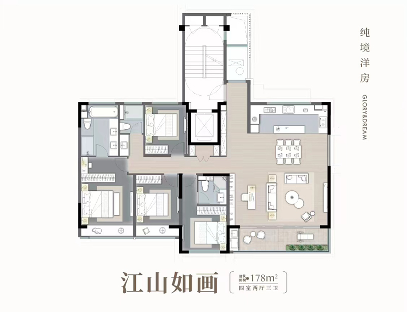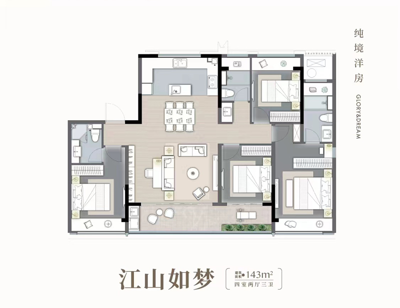 项目以「1.5低容积率」低密大境,规划洋房(建面约109-216㎡)、叠加别墅(建面约213-233㎡)两类产品,墅造全新居住境界,低层业态配有私家庭院,公共空间以江山画境为魂,打造沉稳浑厚、磅礴大气的儒门礼序,构建人景融合、居游一体的 “江山十境”规制,创造一个诗意居住、人文共荣、生活机能与精神栖居完美相融的东方意境。