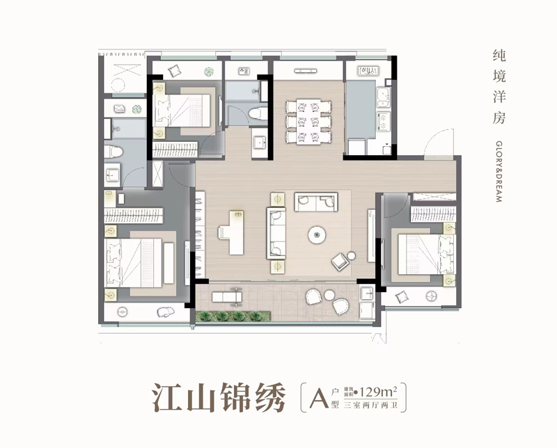 领创扬州户型设计典范、精著洋房,独立玄关,巨幕无柱宽厅,LDK一体化规制,纵享270°环幕观景视野(建筑面积约165㎡户型),每一眼皆让人心怀澎湃。