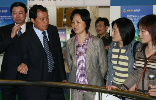 图为董事长包广林向常务副市长张京霞(左三)汇报花样年华的建设情况