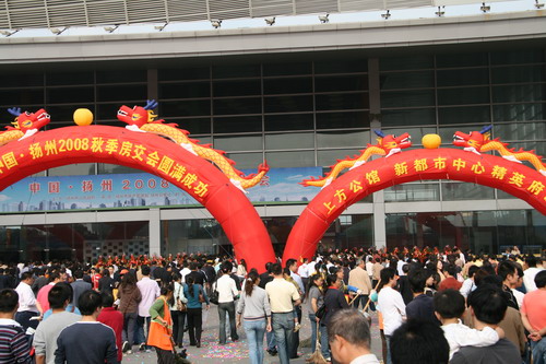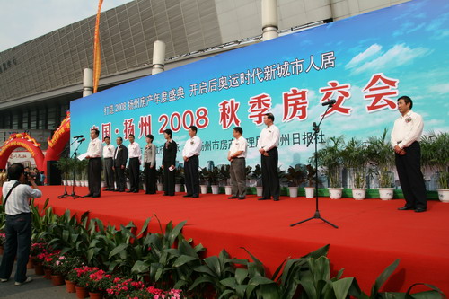 2008年10月18日上午9:18,备受瞩目的中国扬州秋季房展会;在扬州国际会展中心盛大揭幕。与往年不同的是本届房交会首次由扬州市政府直接主办、市房产管理局、扬州日报社联合承办。市长王燕文,市委常委、常务副市长张京霞等出席了开幕式。