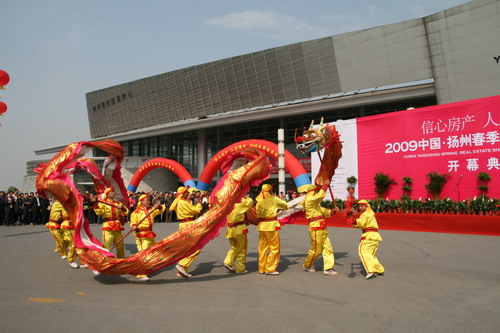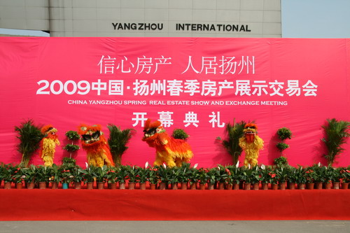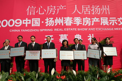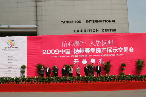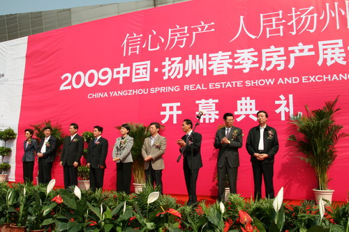 4月30日上午9点18分,2009中国 扬州春季房产展示交易会开幕式在国展中心隆重举行。扬州市委副书记、市长王燕文,国家住房和城乡建设部房地产市场监管司张小宏副司长,市委常委、市政府张爱军常务副市长,市委常委、宣传部部长袁秋年,市人大高瑞芹副主任,市政协朱正海副主席,市政府何金发秘书长,市人大环资城建工委宋建国主任,市政协城乡委周国生主任,市房产管理局局长杨学华,市广电总台徐丽玲台长出席开幕式,市政府副秘书长王炳松主持开幕式。
